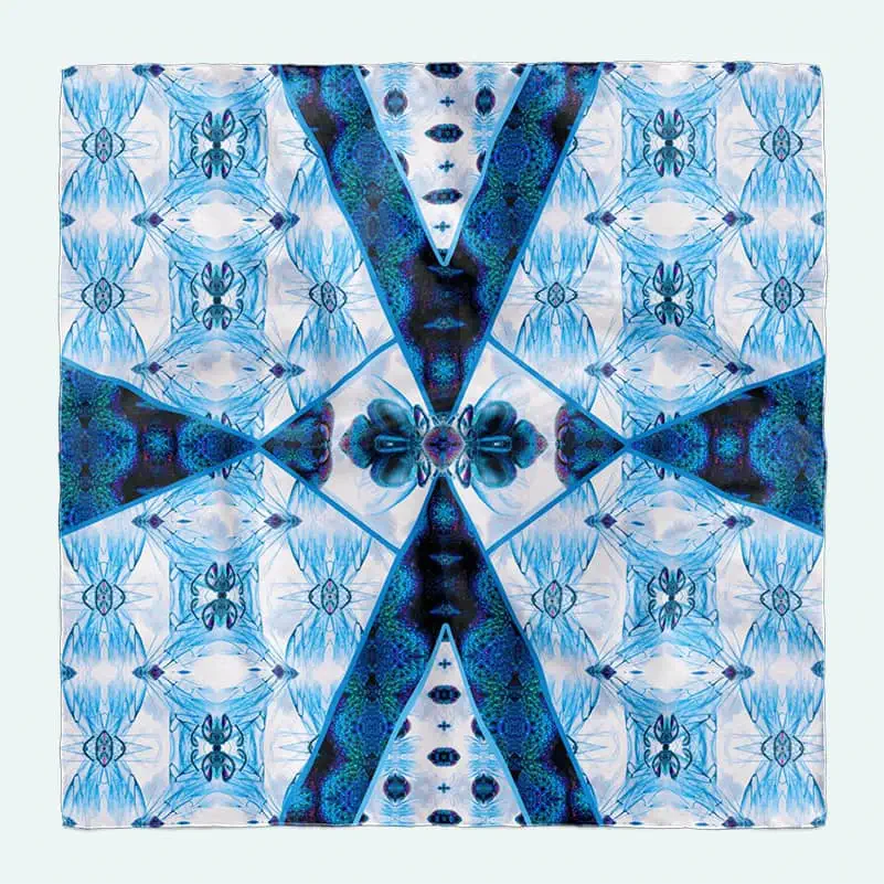Limited edition high-end semi-sheer pocket square printed using cutting-edge digital technology and individually finished with a 4 mm hem. 100% natural fibres.